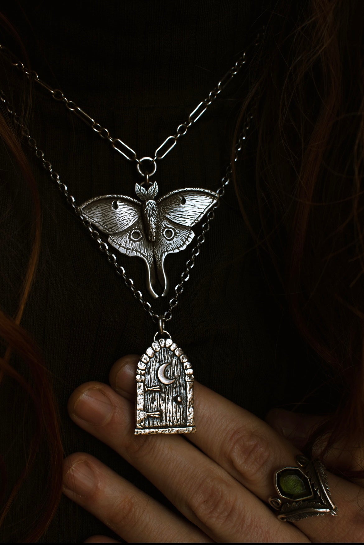This luna moth can be made as a ring or necklace on an 18" chain. Please enter ring size or necklace in the box above.