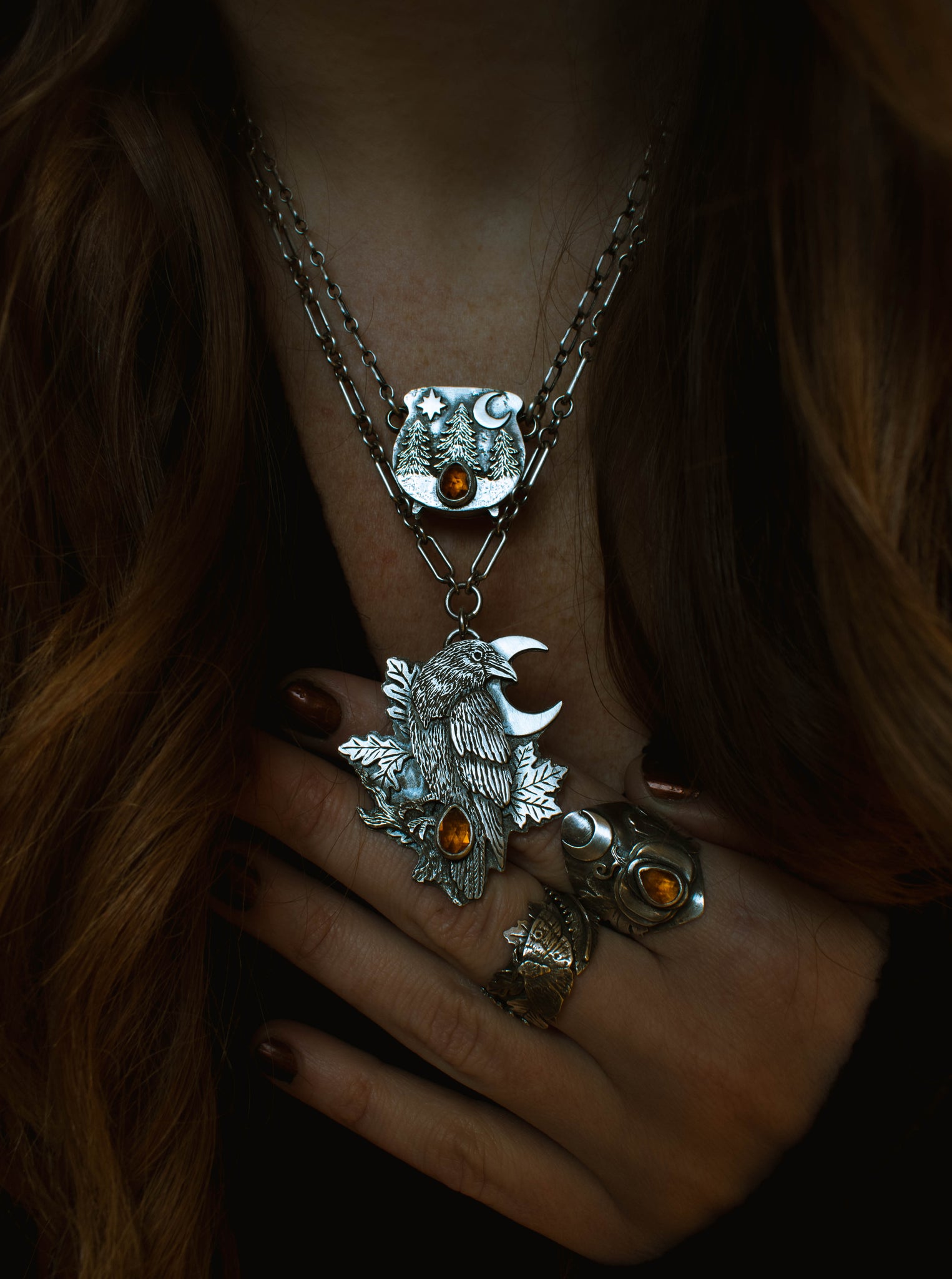 Every element of my work is 100% handcrafted by me out of flat silver sheet and wire. Brought to life with layering and hand engraving texture and detail into each piece.